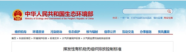 生態環境部發布《揮發性有機物無組織排放控制標準》