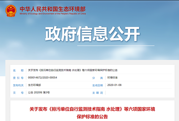 生態環境部發布了《排污單位自行監測技術指南 水處理》等六項國家環境保護標準的公告