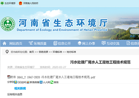 2020年1月21日,河南省生態(tài)環(huán)境廳、河南省市場監(jiān)督管理局聯(lián)合發(fā)布了《污水處理廠尾水人工濕地工程技術(shù)規(guī)范》。自2020年4月21日起實施。