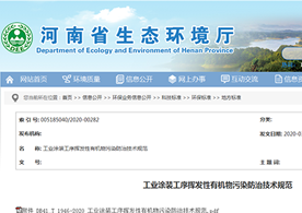 2020年3月27日,河南省生態(tài)環(huán)境廳發(fā)布了《工業(yè)涂裝工序揮發(fā)性有機物污染防治技術(shù)規(guī)范》(DB41/T 1946-2020)