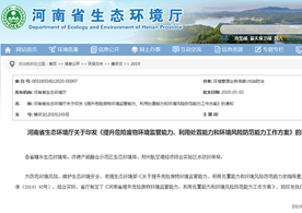 2020年1月3日,河南省生態(tài)環(huán)境廳印發(fā)了《提升危險廢物環(huán)境監(jiān)管能力、利用處置能力和環(huán)境風(fēng)險防范能力工作方案》