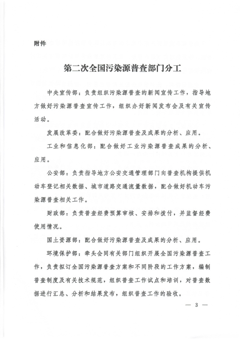 國污普【2017】4號關于印發《第二次全國污染源普查部門分工》的通知