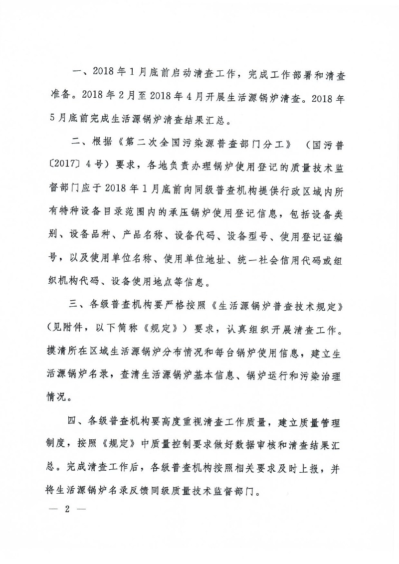 豫污普辦【2018】3號轉(zhuǎn)發(fā)環(huán)保部、國家質(zhì)檢總局關(guān)于開展第二次全國污染源普查生活源鍋爐清查工作的通知