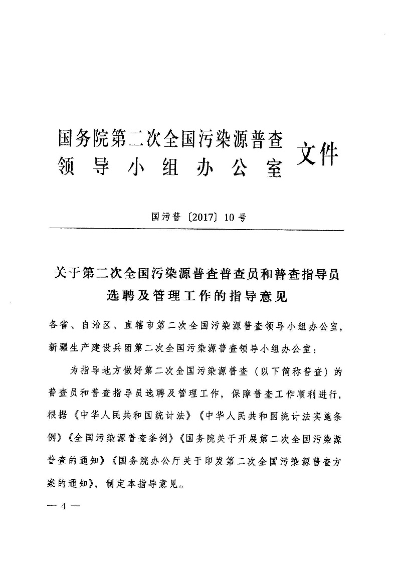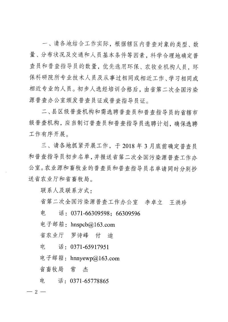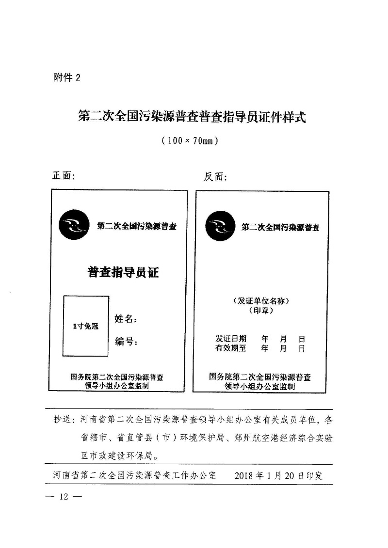 豫污普辦【2018】4號轉發國務院第二次全國污染源普查領導小組辦公室關于第二次全國污染源普查普查員和普查指導員選聘及管理工作指導意見的通知
